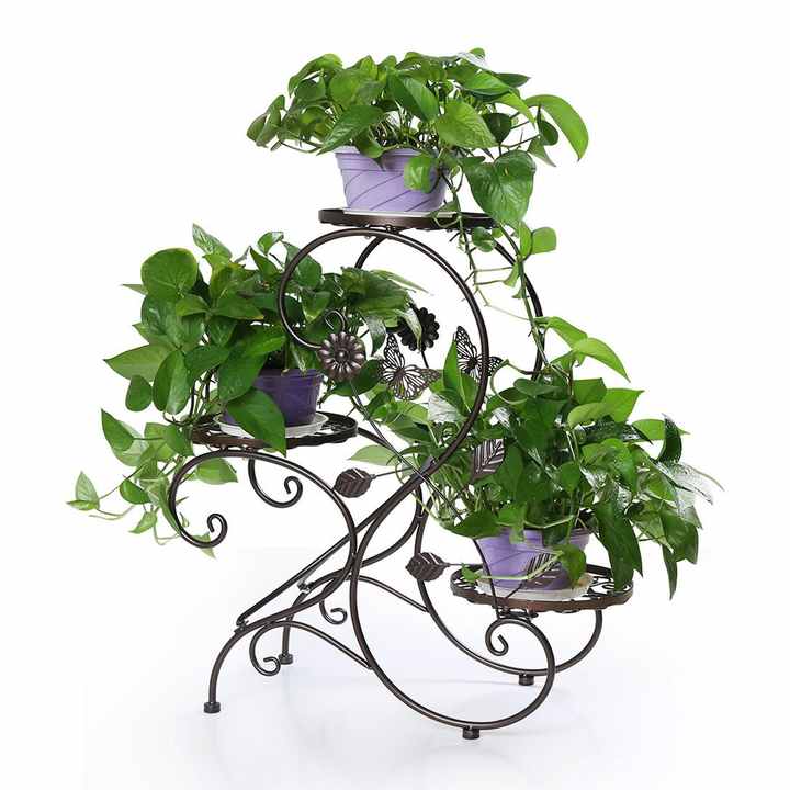 Iron Metal Flower Stand | 3 Pot Stand | Black